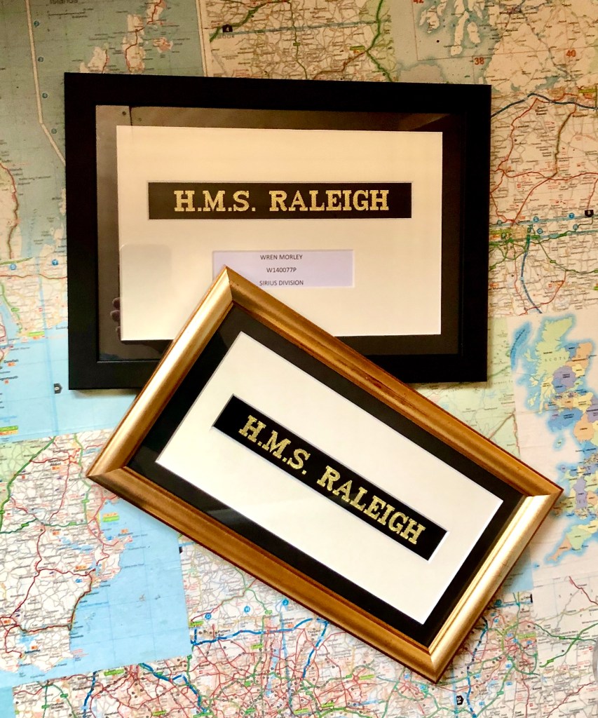 Bespoke text framed in houseFramed photo of Exmouth sea front, before Lockdown March 2020Jenny Wren print framedA beautiful, double-mounted atmospheric printCross-stitch birthday presentDouble mounted cross-stitch pictureBox framed naval crestMemento of training at HMS RaleighA beautiful piece of antique silk preserved to be enjoyed for future generations